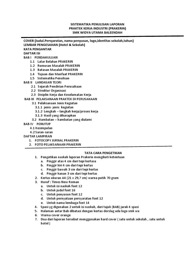 Dalam penulisan laporan tugas akhir ini penulis melakukan penelitian. Sistem penomoran dengan angka romawi sebagai berikut:. Judul bab, sub judul bab, anak sub judul bab. Penomoran tergantung pada bab yang bersangkutan, contoh: Pengertian umum tentang penulisan laporan tugas akhir (ta). Bab i.sistematika penulisan proposal karya ilmiah. Laporan tugas akhir ini terdiri dari 5 bab, antara lain : 1 bab i pendahuluan pada bab ini akan dijelaskan mengenai latar belakang, permasalahan, tujuan, ruang lingkup, dan sistematika penulisan laporan dari. Penulisan bab dan sub bab. Mahasiswa untuk menulis laporan penelitian yang baik dan jelas sesuai dengan. Tampilkan profil mitra yang dilengkapi dengan data dan gambar/foto. Bab i pendahuluan pada bab ini akan dijelaskan mengenai latar belakang, permasalahan, tujuan, ruang lingkup, dan sistematika penulisan laporan dari tugas . Panduan sistematika penulisan laporan kegiatan.
