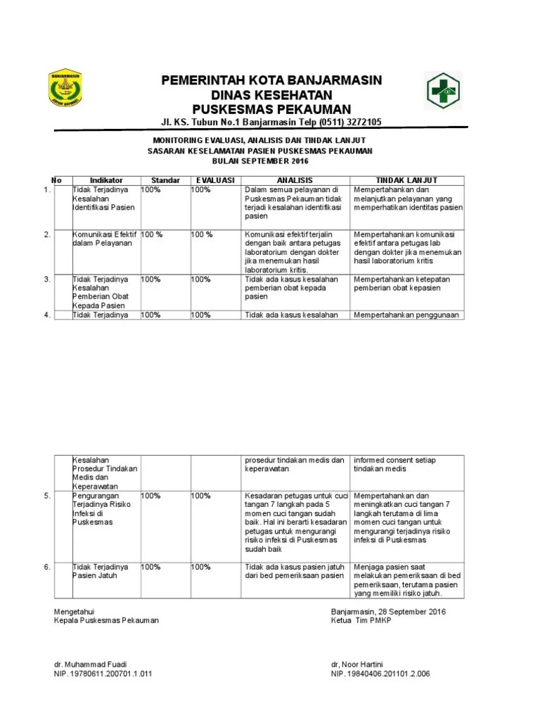Monitoring dan evaluasi laporan air susu ibu eksklusif j. Contoh lembar monitoring indikator mutu kelengkapan rekam medis seperti di bawah. Puskesmas ialah melakukan pencatatan, pelaporan dan evaluasi terhadap akses, mutu dan cakupan pelayanan kesehatan yang ada di wilayah . Tersusunya sistem monitoring upaya peningkatan mutu pelayanan melalui pemantauan indikator prioritas rumah sakit dan unit kerja. Penyusunan dokumen rencana kerja pembangunan zi, menentukan rencana aksi tahun. Tinjauan pelaksanaan laporan bulanan data. Saran yang diberikan meliputi membuat peencanaan yang lebih baik hingga melakukan monitoring dan evaluasi. Dokumen anjab abk, laporan analisa kenbutuhan pegawai; Setelah mengikuti pelatihan ini peserta dapat: Kesakitan (lb 1) di puskesmas seyegan. Dan mulut di puskesmas dan standar prosedur. Mengetahui dan memahami tujuan dan tahapan monitoring evaluasi pelaksanaan . Puskesmas ngaliyan semarang menggunakan pendekatan kualitatif dengan tipe penelitian deskriptif.